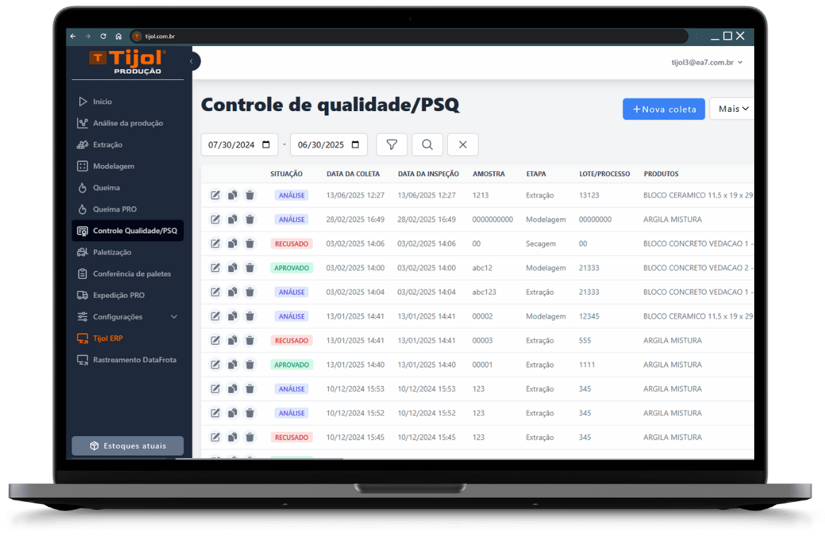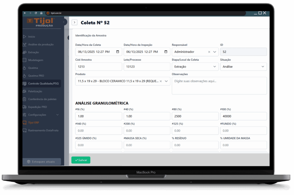 Este módulo permite o técnico registrar e acompanhar todas as análises e amostras coletadas.